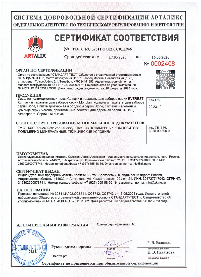 Сертификаты соответствия ZKING для Владикавказа